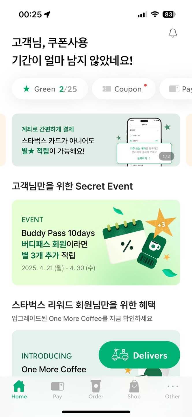 - 전국 스타벅스 매장 어디서든 사용 가능