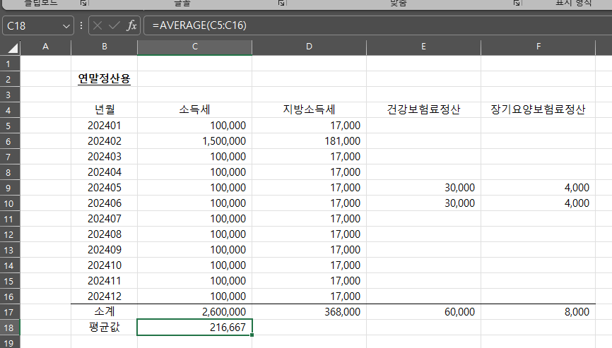 - AVERAGE : 평균 계산 → =AVERAGE(B1:B10)