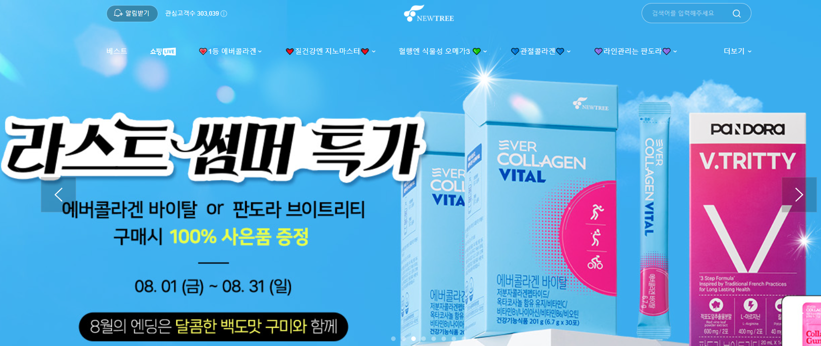 건강한 내면의 아름다움을 위해 건강 정보를 제공하며, 콜라겐뿐 아니라 다양한 기능성 원료와 건강 이슈들을 쉽게 설명하는 뉴트리는 교육형 마케팅으로 차별화를 꾀하는 이너뷰티 브랜드입니다. 에버콜라겐, 마스터바이옴, 이츠코어, 판도라 등 다양한 제품 라인업을 보유하고 있습니다.