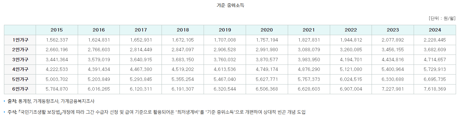 기준 중위소득이 궁금하신 분은 아래 링크 걸어드리니 확인해주시면 됩니다.
