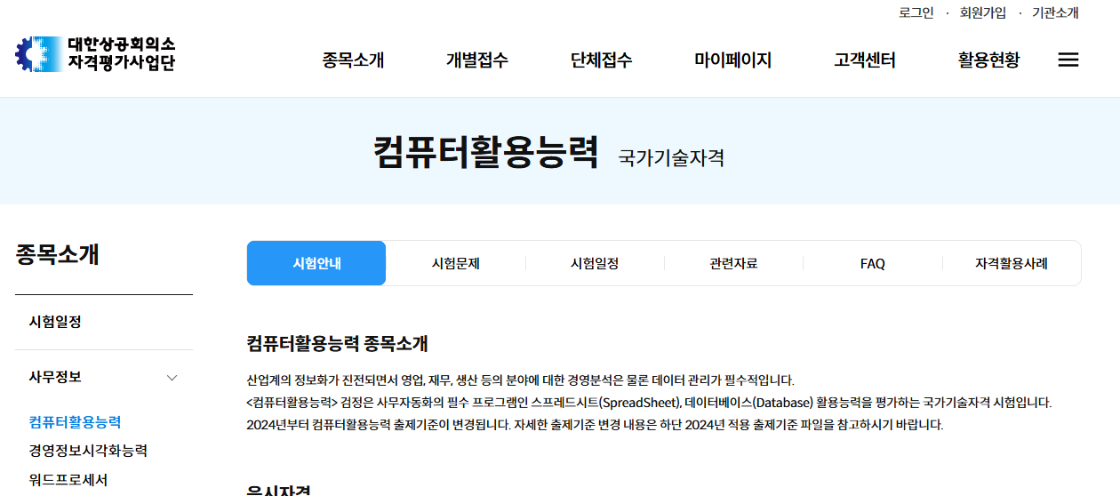 출처: 대한상공회의소 홈페이지 컴퓨터활용능력 자격증 종류 및 특징