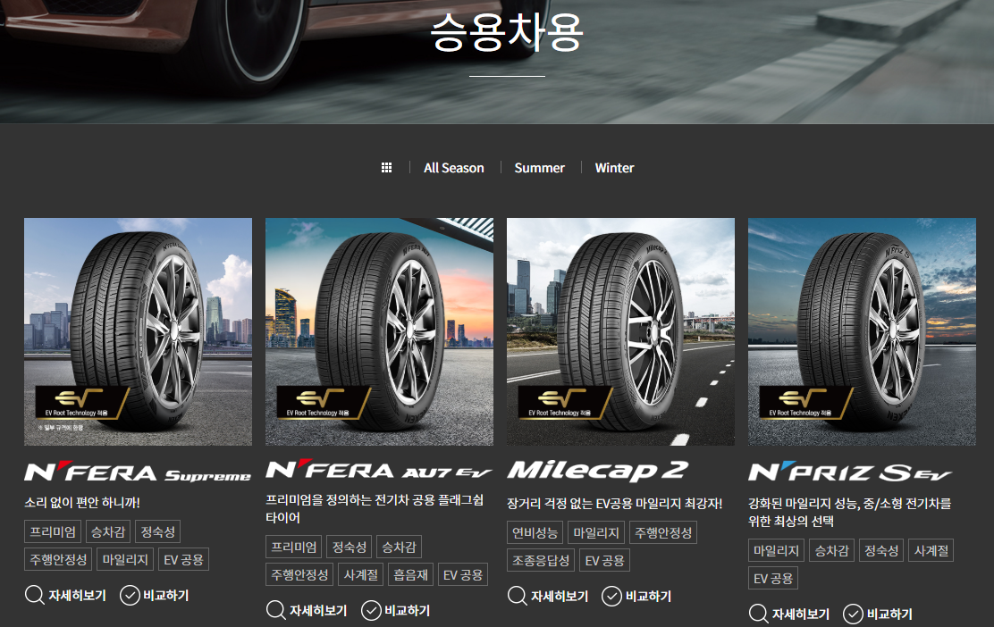 출처: 넥센타이어 홈페이지 하지만 여전히 소음 억제와 승차감 부분에서 개선이 필요하며, 프리미엄 세그먼트에서는 한국타이어나 해외 브랜드 대비 경쟁력이 부족한 상황입니다. 예산을 최우선으로 고려하는 경제적 운전자, 단거리 도심 주행이 많은 초보 운전자, 세컨드카용 타이어를 찾는 소비자에게 가장 적합한 선택입니다.