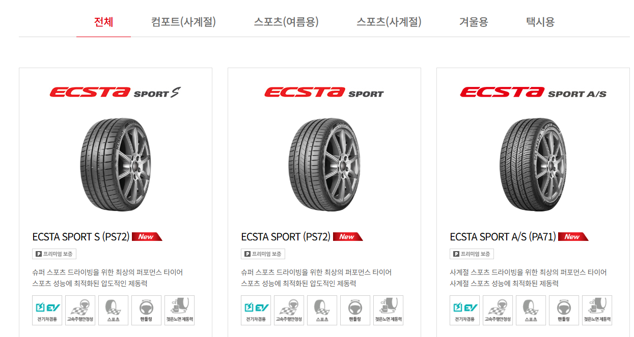출처: 금호타이어 홈페이지 다만 브랜드 인지도가 한국타이어나 넥센 대비 상대적으로 낮고, 고성능 스포츠 타이어나 대형 SUV용 제품군이 다소 제한적이라는 아쉬움이 있습니다. 조용하고 편안한 일상 주행을 중시하는 운전자, 가성비와 승차감을 모두 만족시키고 싶은 중장년층에게 특히 추천합니다.