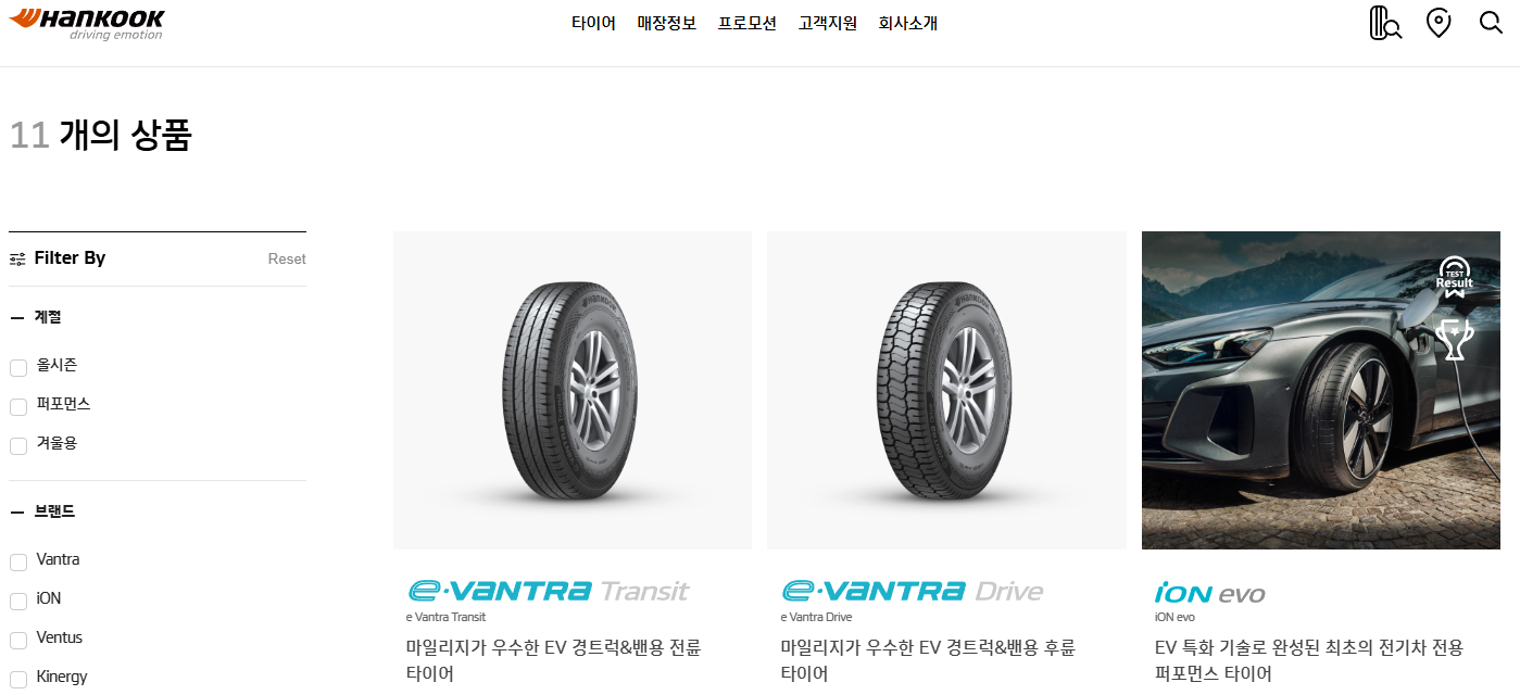 출처: 한국타이어 홈페이지 하지만 프리미엄 브랜드 대비 내구성이 다소 아쉽고, 일부 제품에서 고속 주행 시 패턴 소음이 발생할 수 있다는 단점이 있습니다. 그럼에도 합리적 가격으로 안정적인 성능을 원하는 일반 운전자, 연간 주행거리가 적은 도심형 운전자에게 가장 추천할 만한 브랜드입니다.