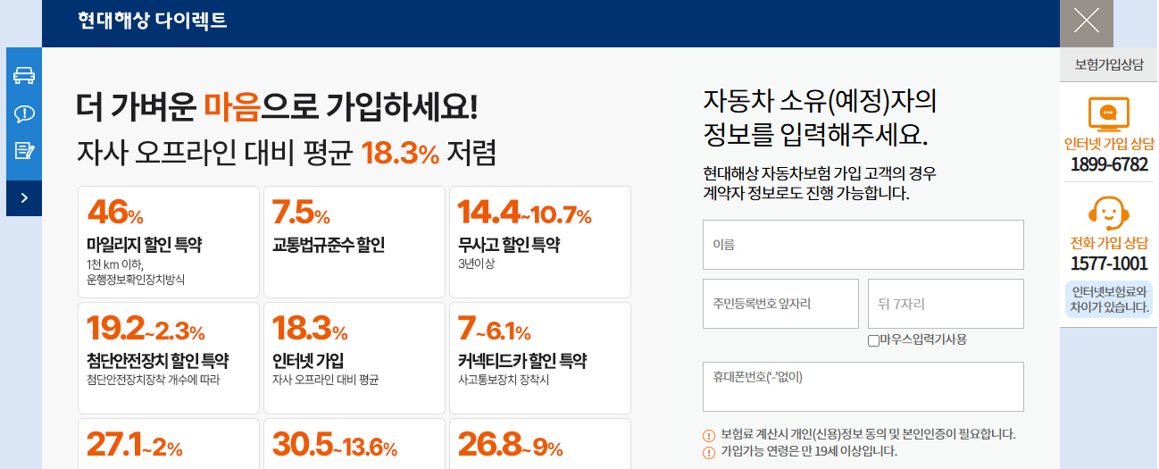 자동차보험료 가입/설계(개인) | 현대해상 다이렉트