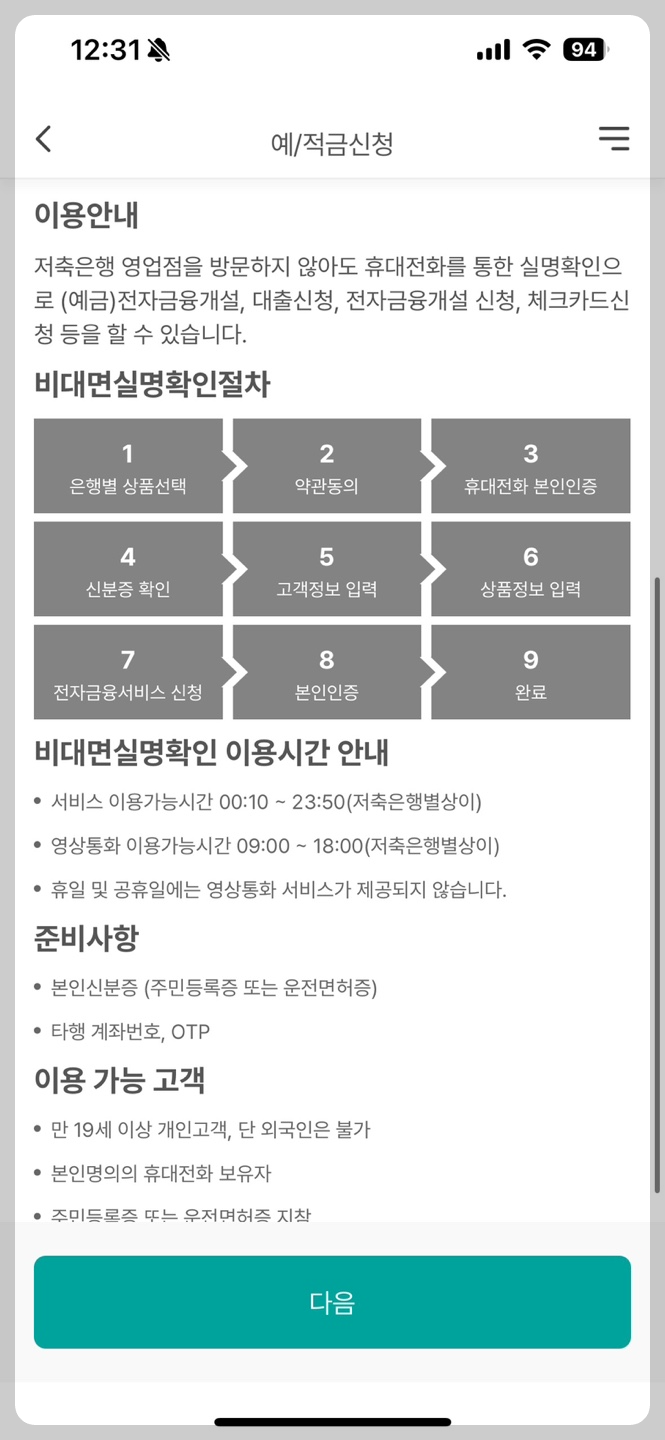 비대면실명확인이 필요하므로 가입하실 때는 서비스 이용이 가능한 시간에 진행해주시고 준비사항은 신분증과 타행 계좌번호, OTP가 필요합니다. 모든 가입이 완료가 되면 예치금을 입금해야하는데 보낼 은행명이 확인이 안 되서 한참 찾아봤는데요. 천천히 내려가보면 SB저축은행 아이콘을 찾으실 수 있습니다.