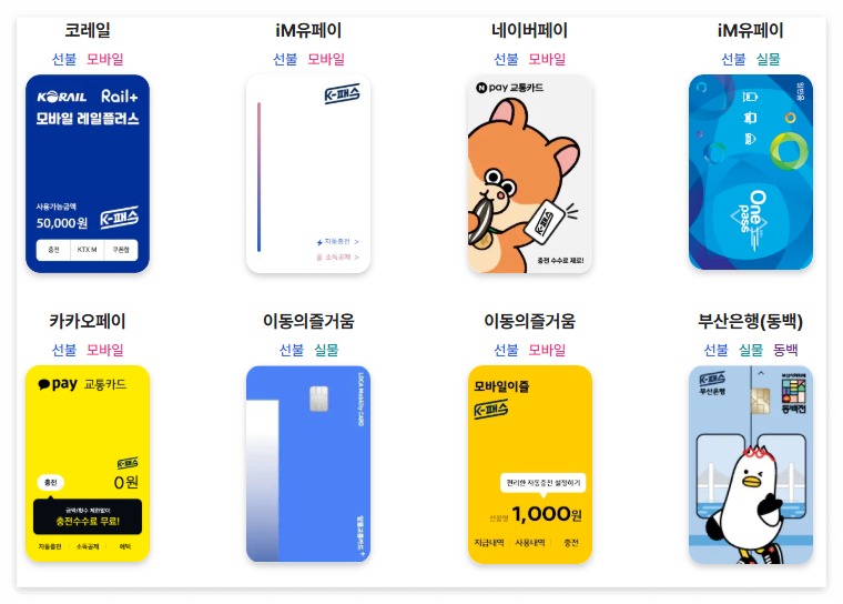 - 모바일 선불카드: 모바일 이즐, 카카오페이, iM원패스 앱에서 발급 가능